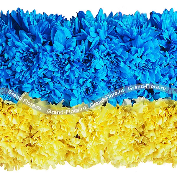 ДЕЛЮКС: гвоздика кустовая желтая (или замена на хризантему кустовую желтую) - 25 шт, хризантема кустовая синяя - 20 шт, оазис.
